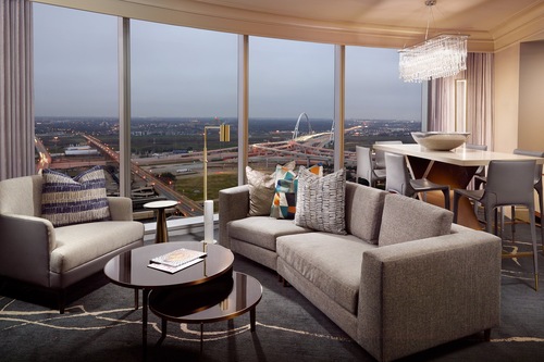 Unique pieces from local dallas artists are featured in our guest rooms meeting space and restaurants. Chic rooms and suites feature floor to ceiling windows with sparkling city views and sensory floor lighting. Omni dallas hotel is conveniently located in the heart of downtown dallas across the street from the dallas convention center.